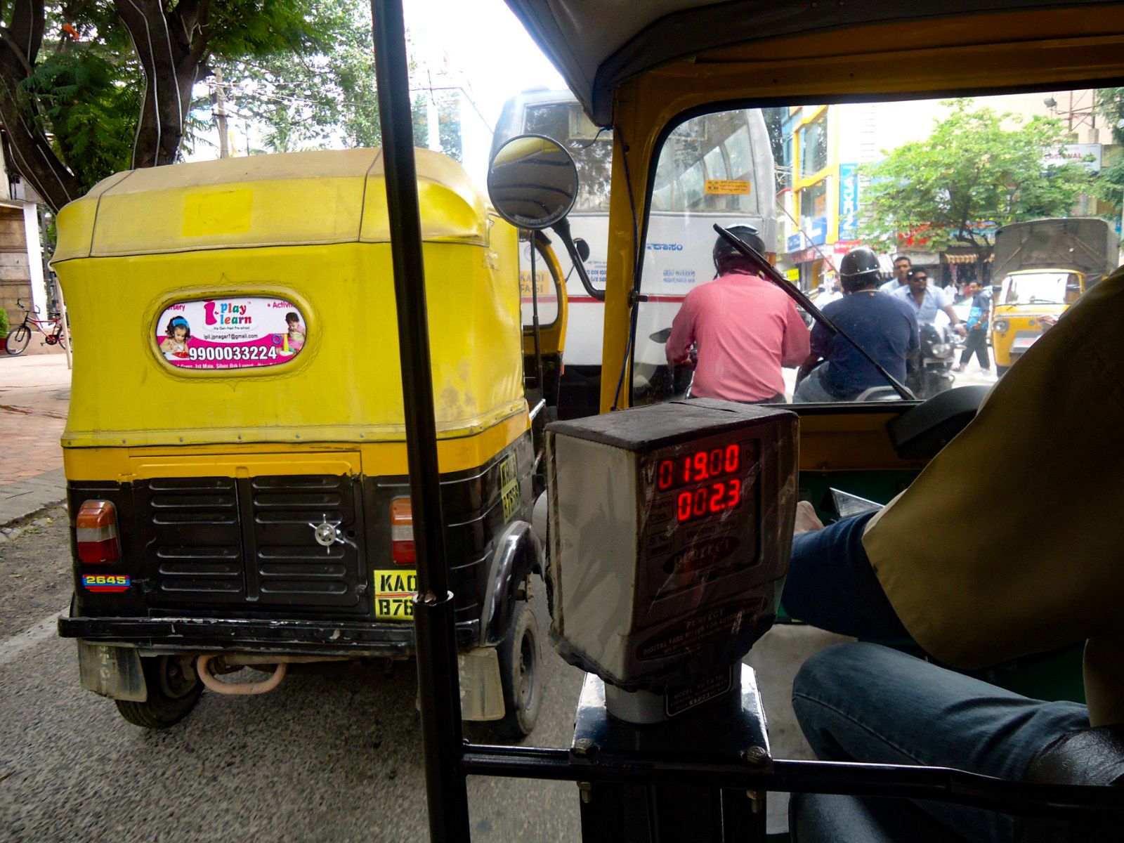 Logo que cheguei, fui do aeroporto direto para o Ashram em Bangalore de táxi. Duas horas de um trânsito que parecia uma dança tribal entre carros, motos, caminhões, tuktuks, bicicletas, vacas, bodes, macacos, pedestres, carroças e buzinas — muitas buzinas. O trânsito é realmente pior do que vemos na TV. Buzina pra eles é um meio de comunicação. Depois fui descobrir que mesmo sem trânsito e até de madrugada as buzinas seguem a todo vapor, tudo junto e misturado, em uma dança que eu ainda não era capaz de compreender. Certamente a noção de espaço deles é diferente da nossa. Eu jurava que não cabia nem uma moto naquele espaço onde o taxista passava e buzinava pra vaca que estava passando logo a frente. Uma verdadeira aventura.